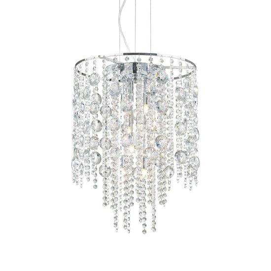 Pandantive din cristale tăiate. Suspensii cu cablu de oțel cu lungime reglabilă prin dispozitiv automat de oprire a cablului.