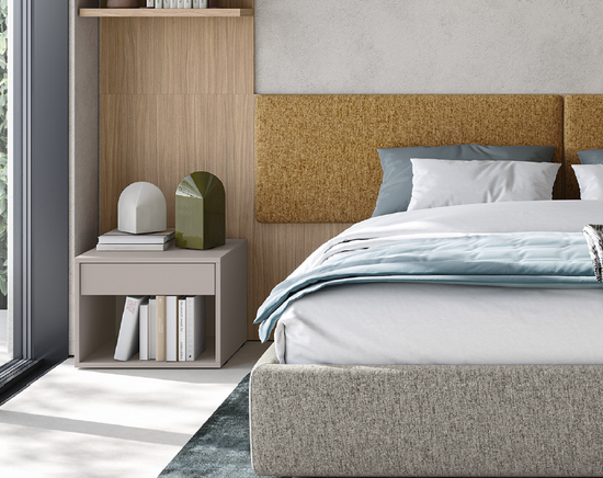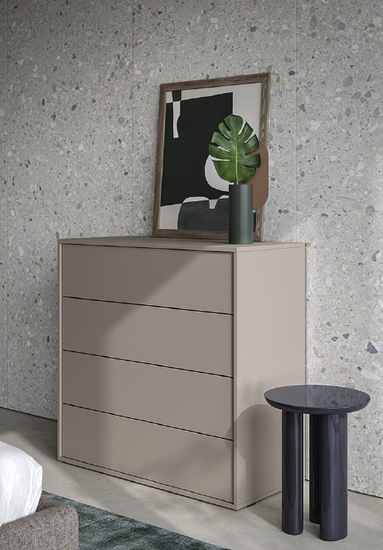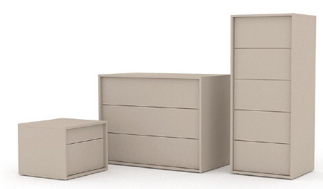 Linia QUADRO este disponibila cu 2 dimensiuni de comoda, o comoda si doua modele de noptiera (primul cu sertar si compartiment deschis, al doilea cu sertar si comoda)
