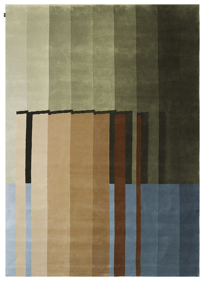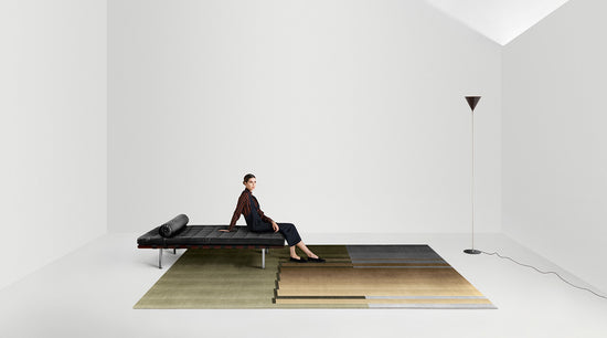 Efectul de refracție dat de sticla ondulată este laitmotivul seriei RD Braque, o colecție de covoare cu referințe puternice la lumea designului arhitectural. Un studiu atent al culorilor și infinitelor declinații ale acestora conferă un efect pictural suprafeței covoarelor, înnodate manual în prețioasă lână din Noua Zeelandă.