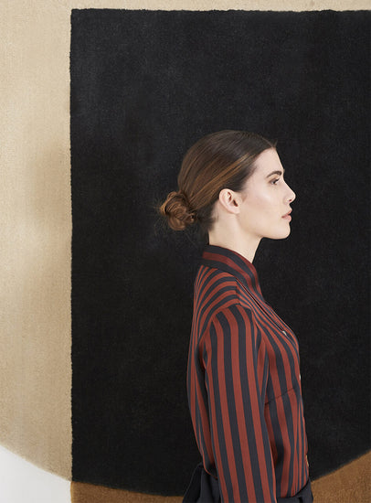 Concepute în nuanțe de gri și culori pământii, Teorema sunt realizate în India cu fire de lână și tencel, puse în valoare de lâna cizelată manual pe două niveluri.