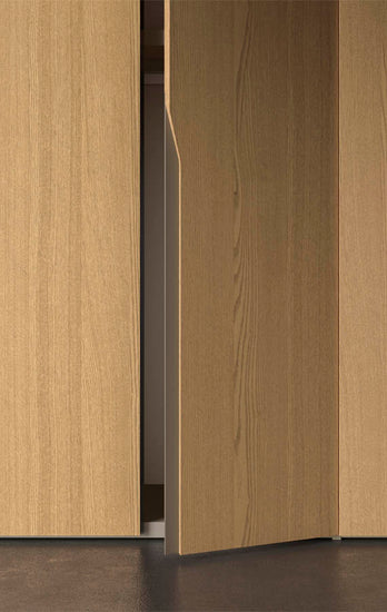 Design proaspăt și modern, inspirat de o estetică minimal cu linii contemporane. Cele sofisticate geometria mânerului seamănă cu un profil conic aripă, constând dintr-o tăietură verticală de-a lungul ușii și o parte interioară care poate fi personalizată în finisaje lăcuite, în esențe și în finisaje metalice mate sau lucioase. Posibilitatea de alegere a ușilor este și mai largă, disponibil in sticla, oglinda, lemn si lacuit, de la coordonate sau nu cu mânerul, pentru un efect de ton în ton sau în contrast.