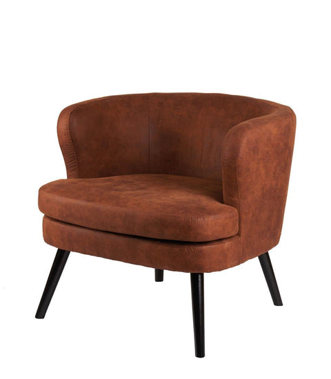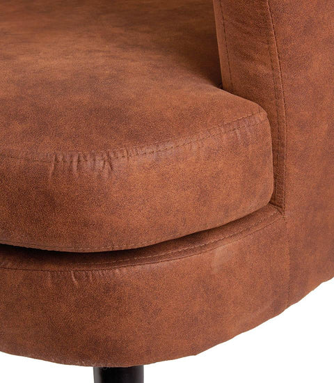 Fotoliu din piele ecologica cu structura si picioare din lemn de culoare inchisa. Este un fotoliu confortabil cu un design contemporan.