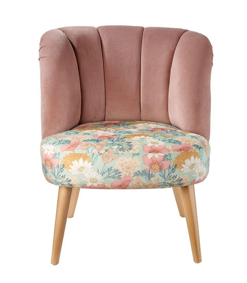 Fotoliu cu nuanțe pastelate elegante și decor floral. Confortabil și rezistent datorită picioarelor și structurii din lemn. Detaliul rafinat pentru o atmosferă relaxantă.