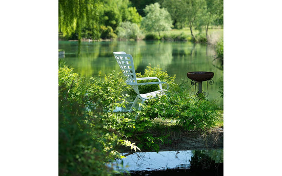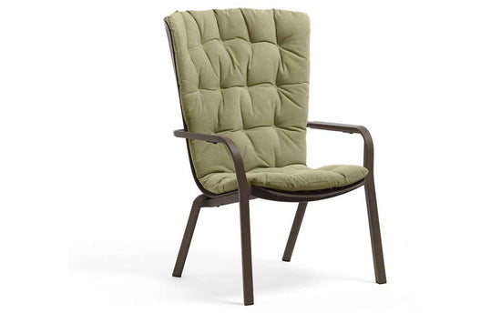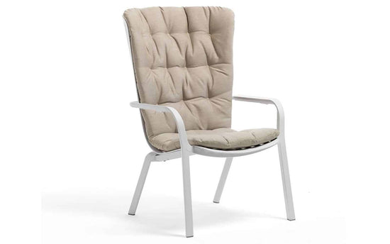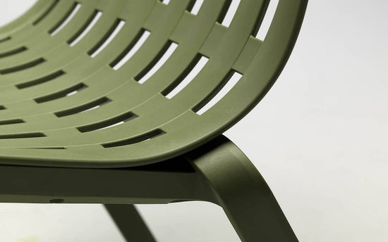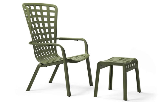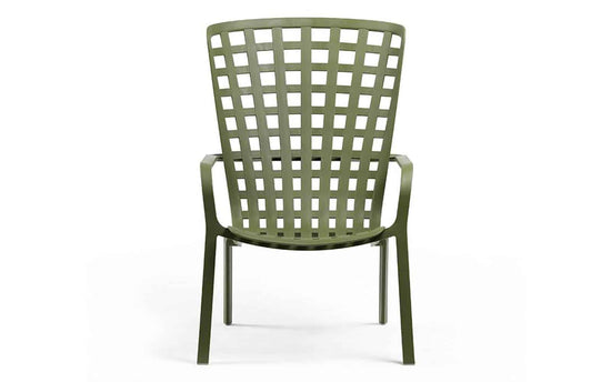 - Folio este un fotoliu de relaxare pentru exterior realizat din rasina fibra de sticla, cu model patrat perforat si finisaj mat. Cu un spătar învăluitor, conectat perfect la scaunul generos, coborât, fotoliul este ca o singură îmbrățișare structurală rafinată, înclinată în două poziții confortabile.