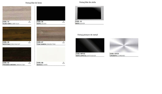 Picioare din oțel cu finisaj cromat lustruit sau picioare vopsite în negru mat