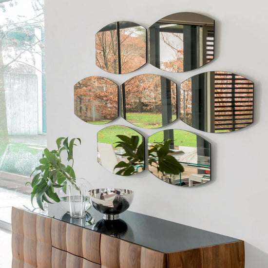 Oglinda Skin s-a născut pentru a face parte dintr-un întreg, răspândindu-se pe pereții tăi. O oglindă pusa una langa cealaltă, compun modele de lumină posibil nelimitate.