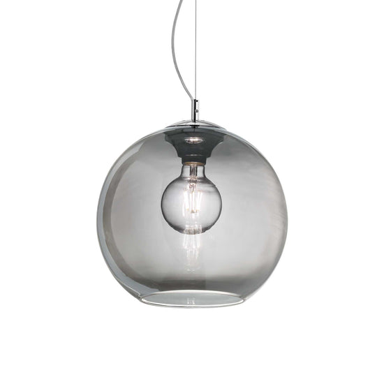Difuzor din sticla suflata. Disponibil cu finisaje fumuriu, cupru, transparent sau crom decolorat.