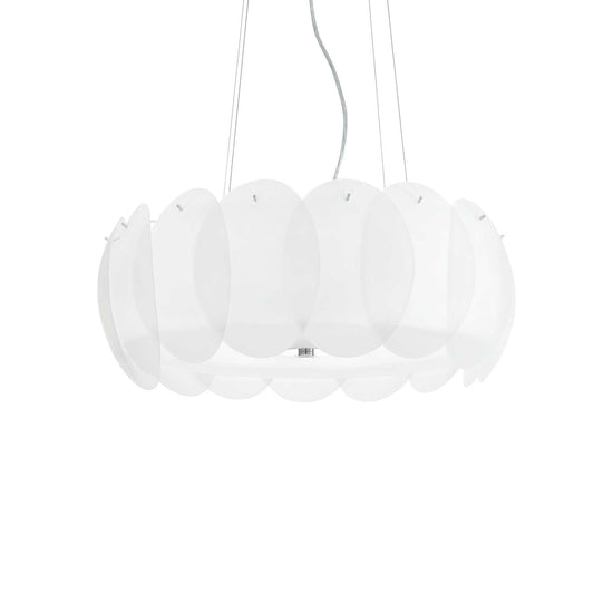 Difuzor compus din elemente circulare in placa de sticla curbata si gravata. Cabluri de otel reglabile in lungime prin dispozitive automate.