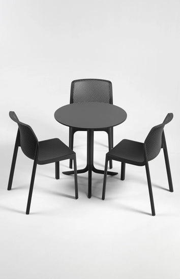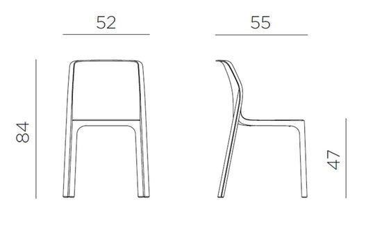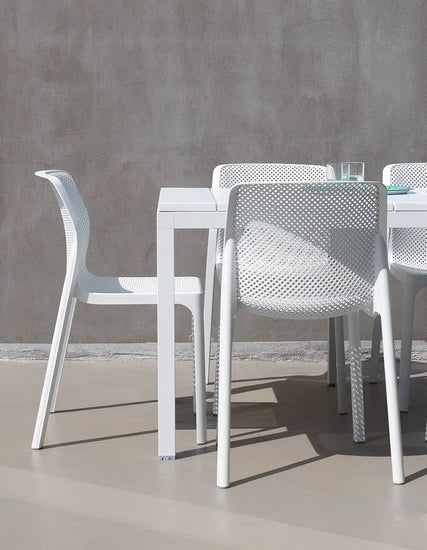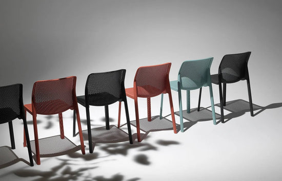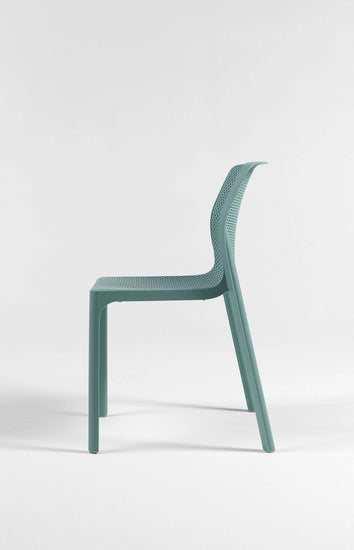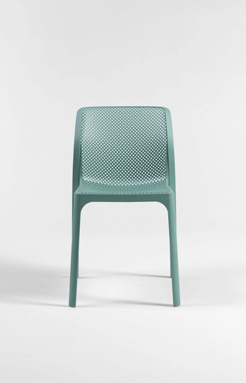 Design rafinat și atenție la detalii pentru Bit, un scaun fără cotiere din rășină din fibră de sticlă tratată UV, colorată în masă. Designul, modelul de perforare și gama de culori fac Bit potrivit pentru utilizare în interior și exterior.