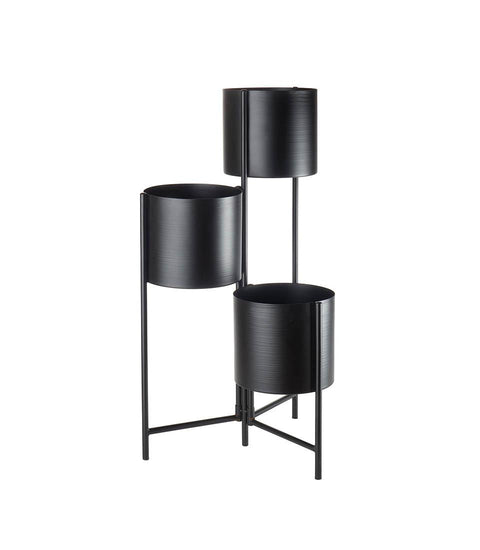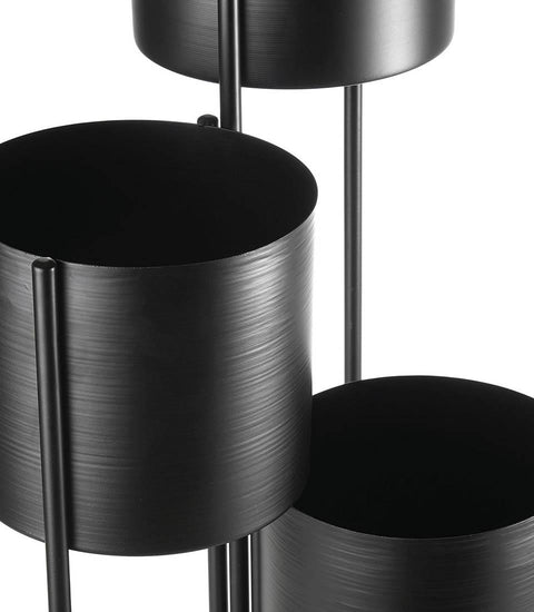 Suport cu 3 vaze metalice negre. O piesa de mobilier care va crea un spatiu verde in fiecare colt al casei. Ideal pentru iubitorii de stil Urban și Total Black.