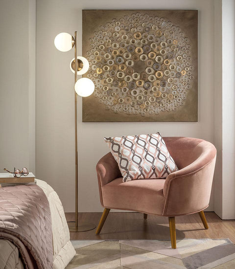 Tablou realizat cu tehnica acrilica pe panza. Un cadru rafinat cu tonuri metalice de bronz, argint și auriu. Ideal pentru cei care iubesc un design Fashion.
