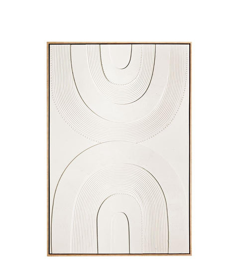 Tablou inramat realizat cu tehnica picturii acrilice pe spuma pe panza. Fantezie inspirată din prestigioasa artă a măștilor etnice și detalii materiale în relief care creează un joc modern de umbre.