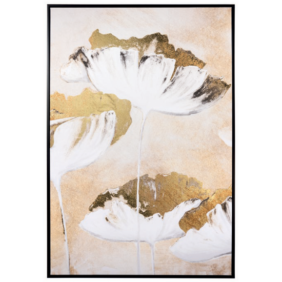 Modelul tabloului canvas 1Q157 ar da viata peretilor incaperii tale si un ton oricarui spatiu gol prin auriul elegant presarat printre nuantele pure de alb pe formele sale florale.