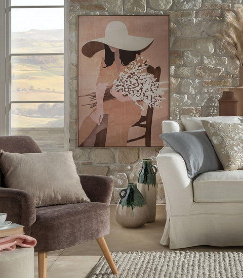 Tablou cu rama realizat cu tehnica serigrafiei pe panza. Culori pastelate si linii delicate pentru o panza cu stil romantic.