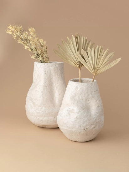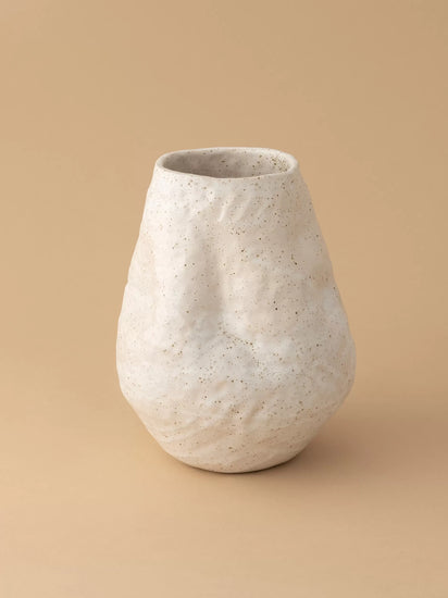 Modelată de meșteri locali dintr-un sat îndepărtat din Europa de Est, The Great Vase este construită folosind tehnica veche de bobinare. Glazura uniformă mată însoțită de pete discrete de fier ne amintește de tonurile naturale ale plajelor de nisip curat. Aspectul neutru și pământesc se va potrivi perfect într-un decor care va rămâne neatins de trecerea timpului.