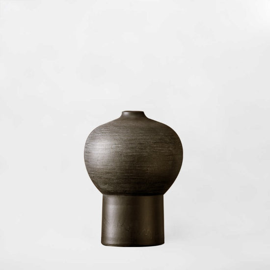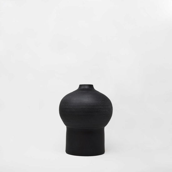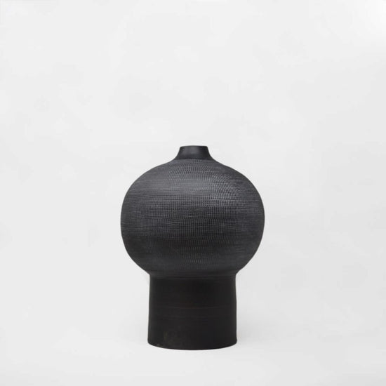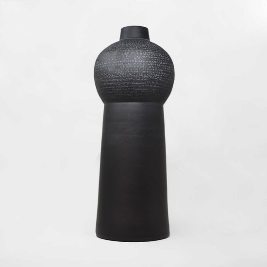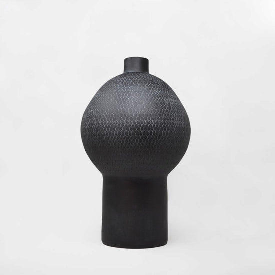 Vas ceramic decorat cu finisaj negru auriu, negru argintiu sau negru. Două dintre ele doar in finisaj alb.