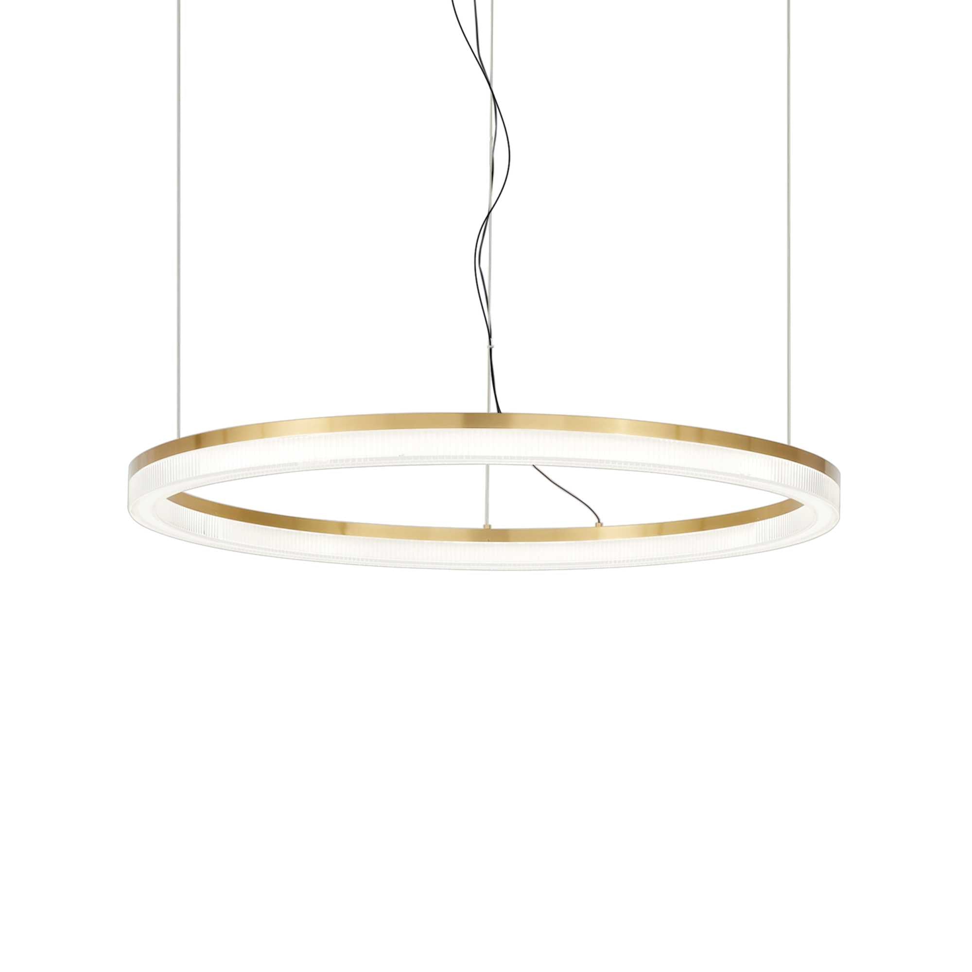 Rozetă și cadru metalic cu finisaj din alamă periată. Cablu PVC negru. Difuzor acrilic opal cu element decorativ acrilic transparent cu efect de cristal taiat.