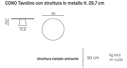 Dimensiuni: Ø 93 H 30 cm.