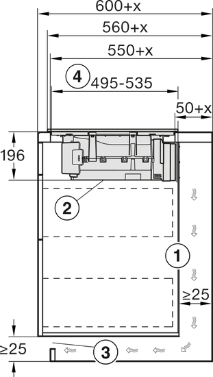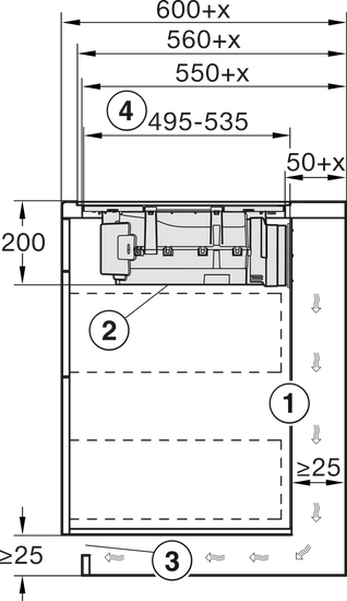 Dimensiuni în mm (adâncime) 520
