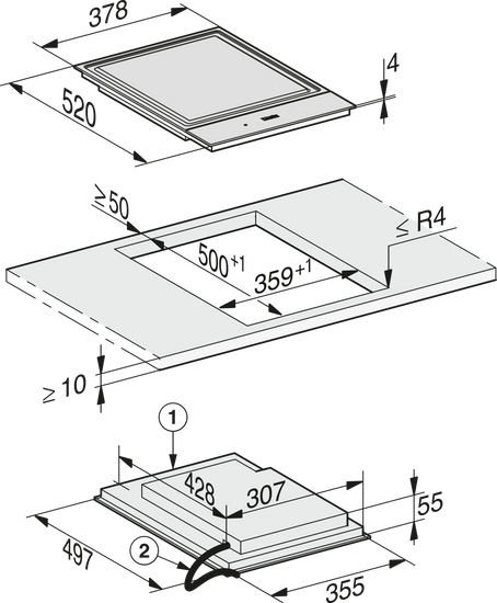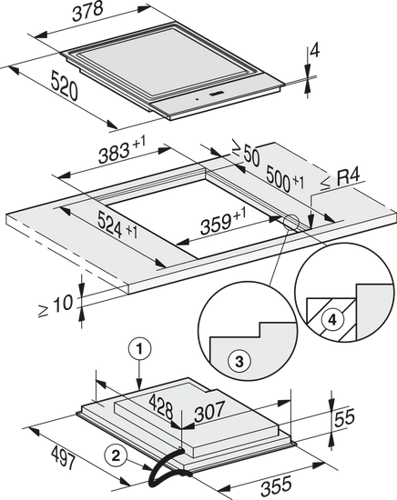 Dimensiuni (Î x L x A) în mm 60 x 378 x 520