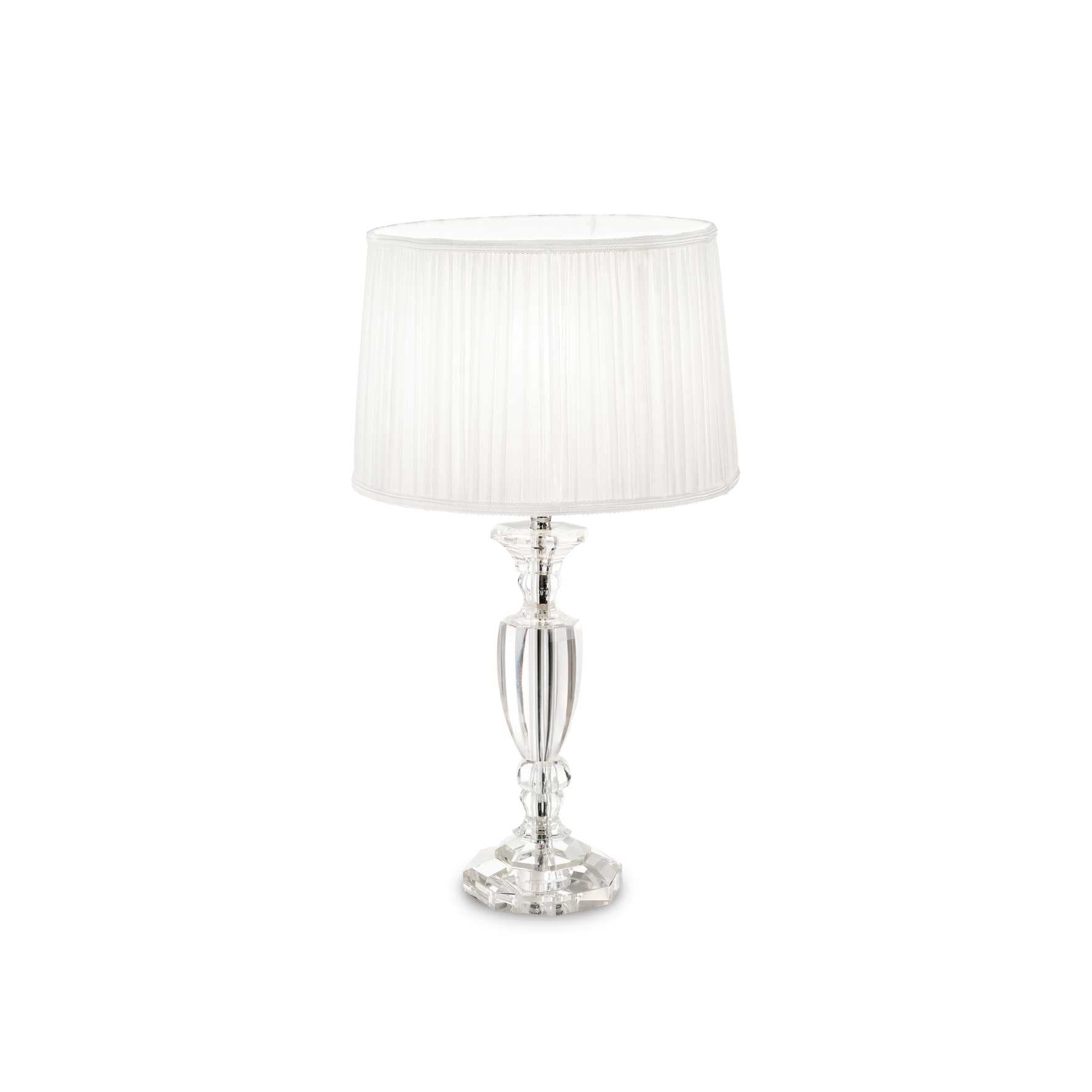 Corp ușor cu elemente de cristal tăiate transparente. Abajururi din material dublu, plisat.