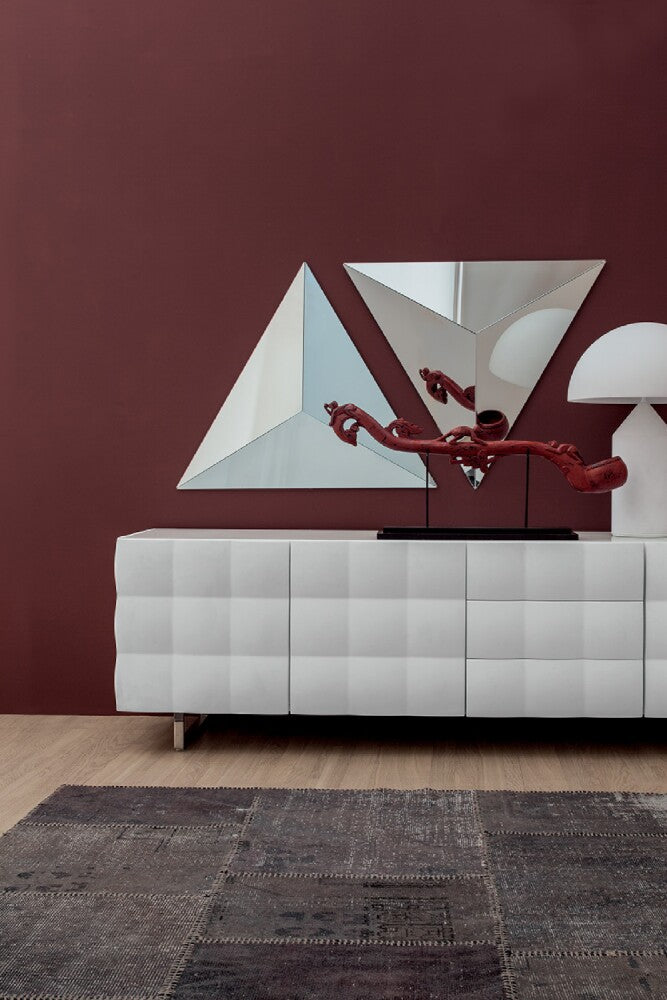 Această oglindă este denumită din punct de vedere tehnic „înclinată”, dar cu siguranță este mult mai mult decât atât: structura sa particulară poate de fapt duplica imaginile reflectate pe ea și, prin urmare, poate mări camera în care este atârnată. Este disponibilă doar varianta cu oglindă argintie, tocmai pentru a-i spori forma tridimensională și pentru a refracta mai bine lumina.