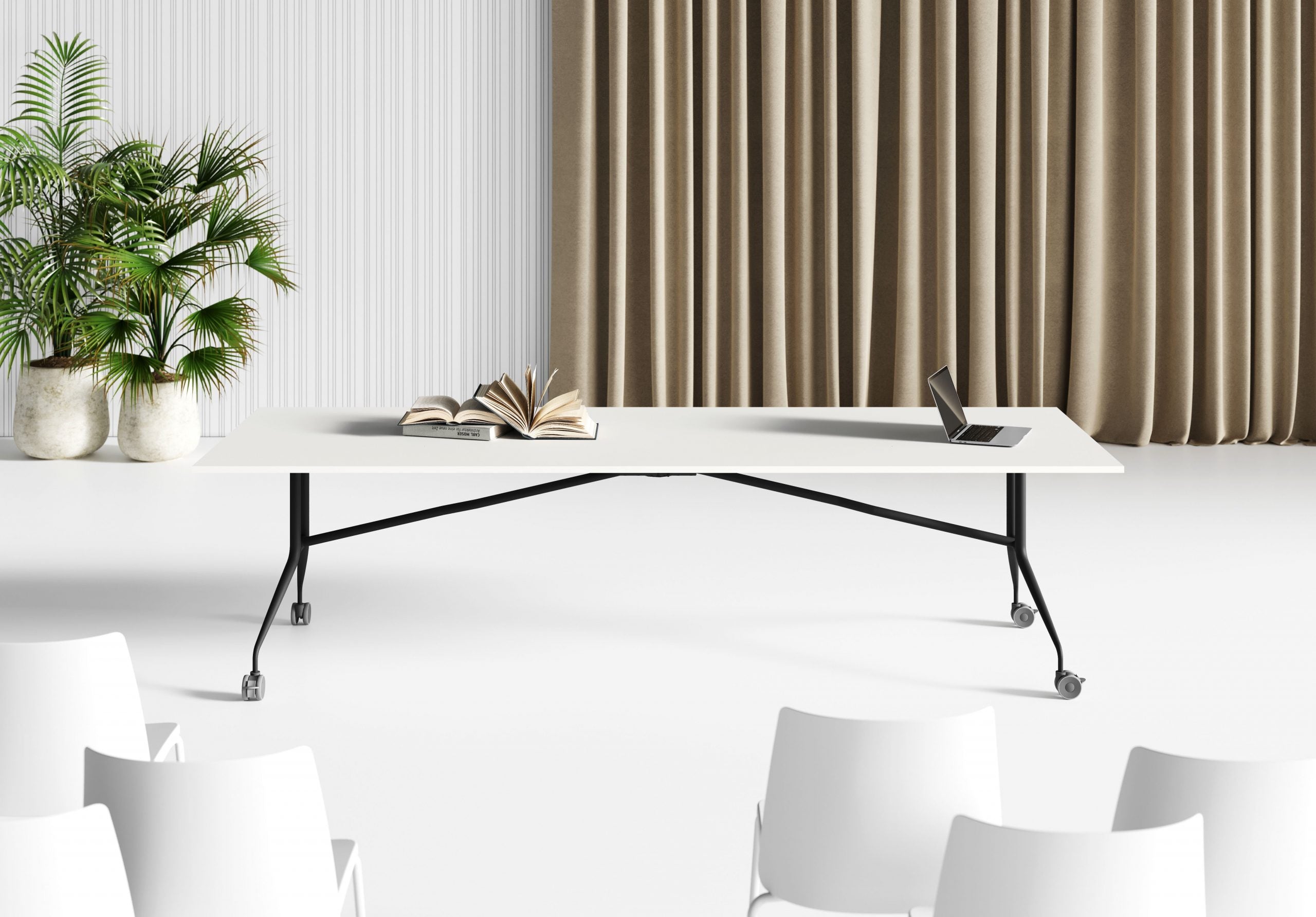 Mese rabatabile in diverse finisaje, cu blat rabatabil sau picioare rabatabile, concepute pentru medii polivalente in care intalnirile, antrenamentele sau lucrul in echipa necesita configuratii usor modificabile si depozitare compacta si usoara.