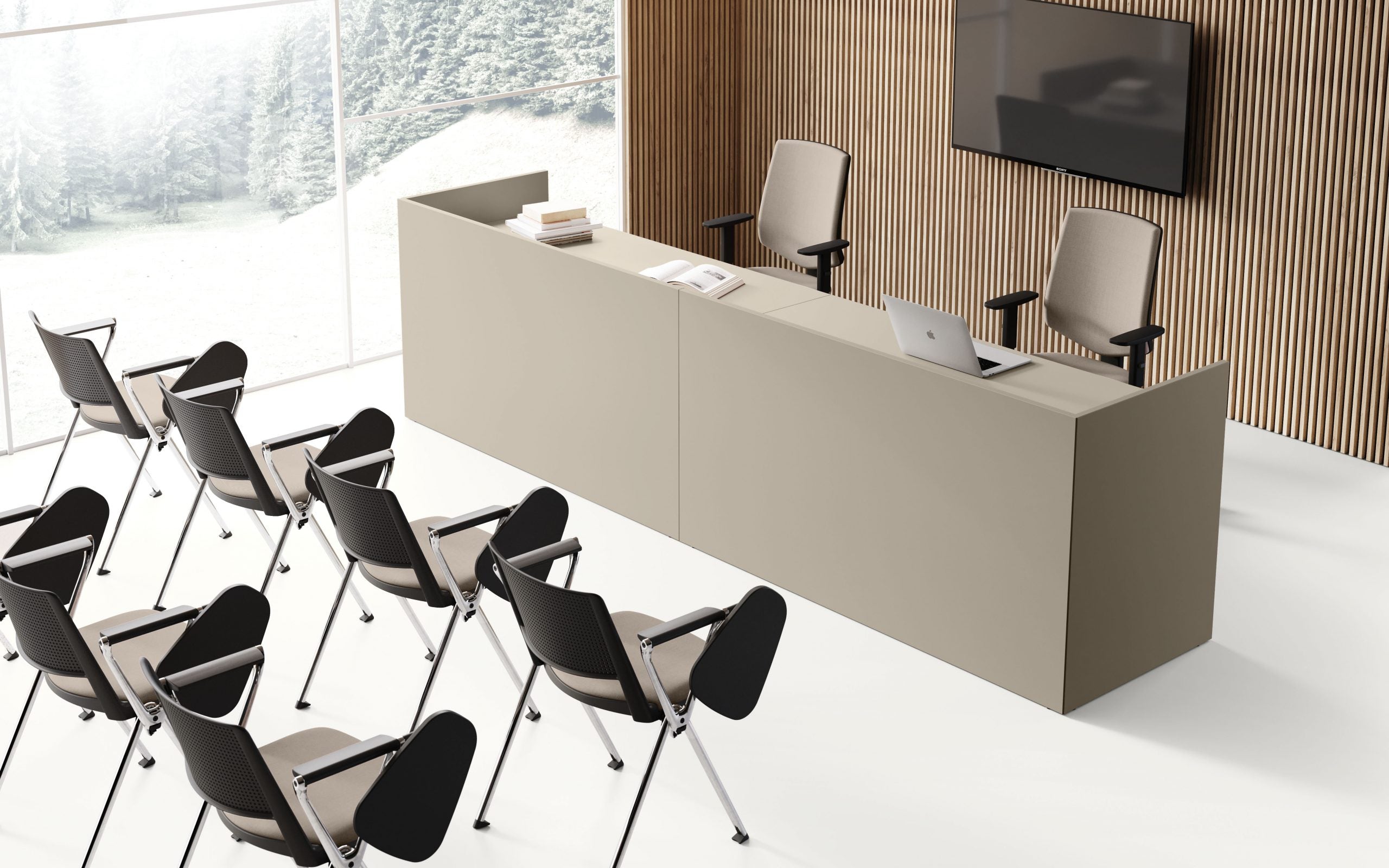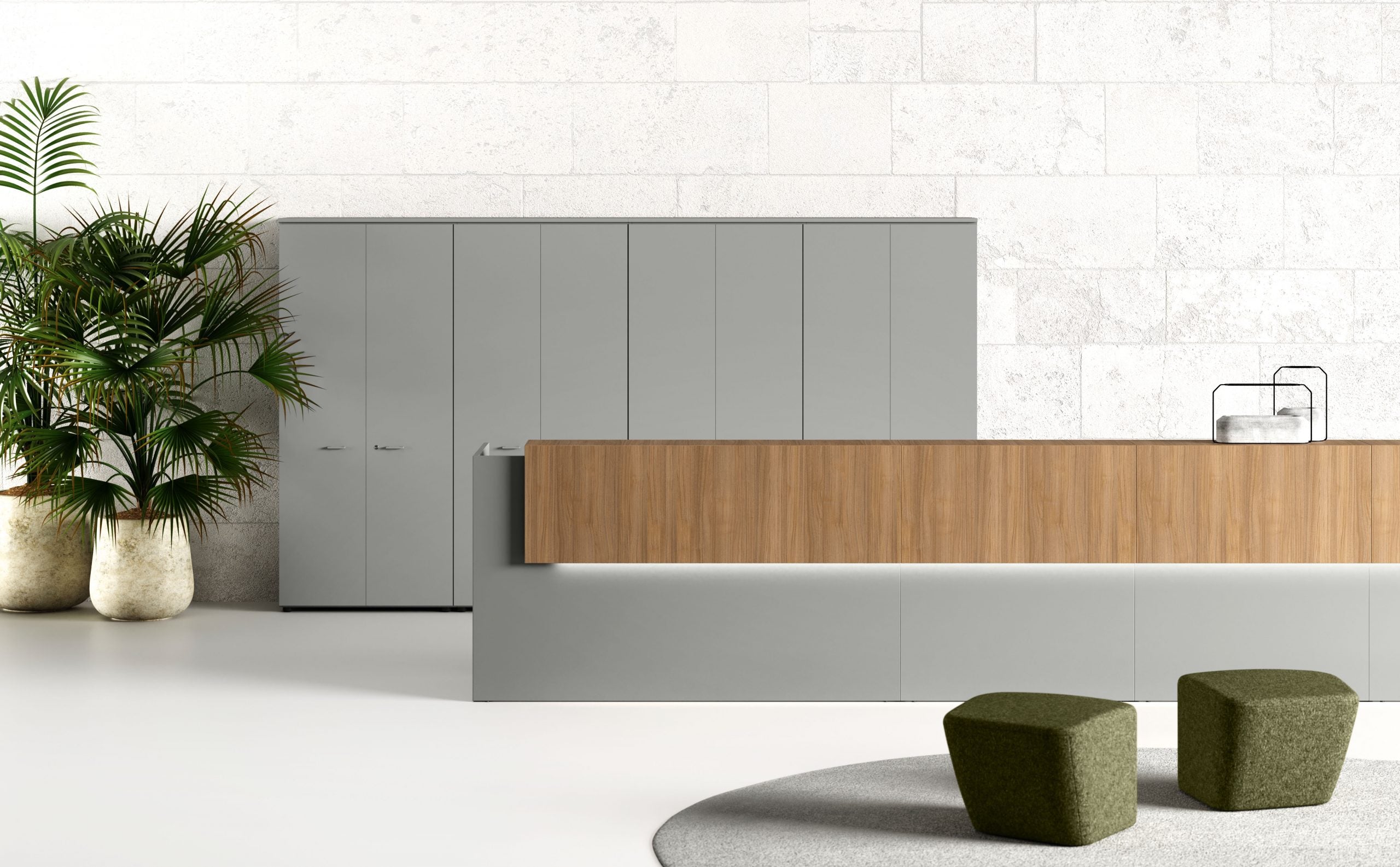 Recepția Point este inspirată de criterii de rigoare formală declinate în module versatile care pot fi combinate între ele. Simplitatea în compoziție și stilul său minimal generează combinații infinite, cu forme și dimensiuni diferite, care pot fi adaptate oricărui context.