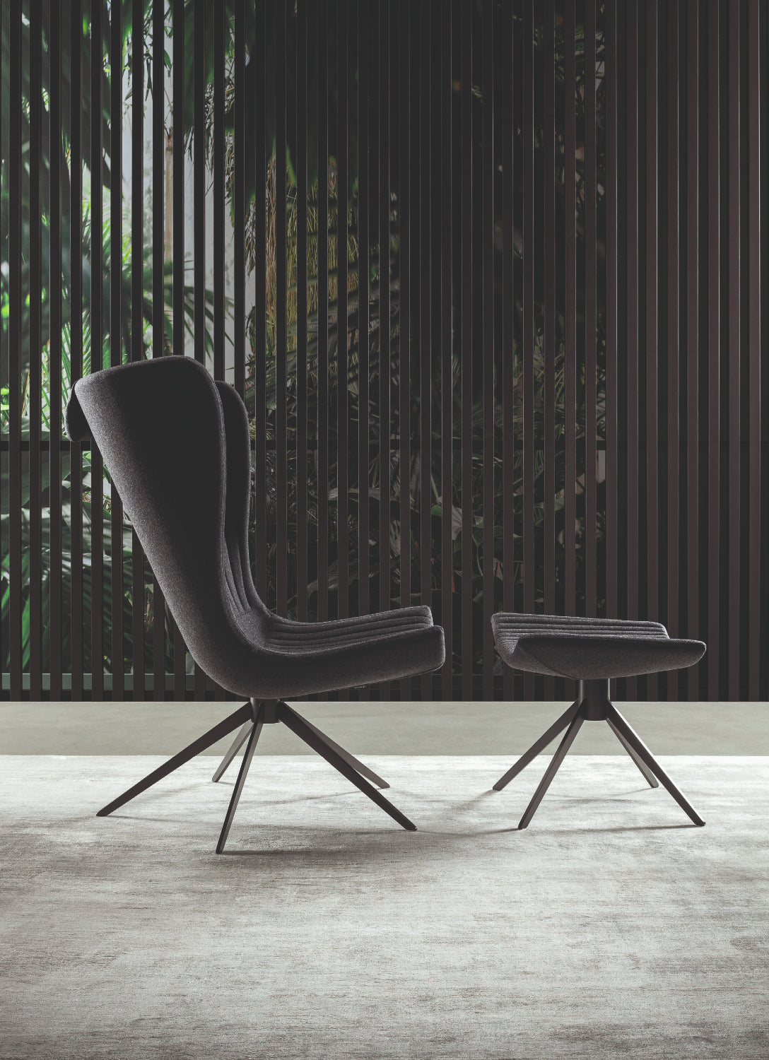 Fotoliul Colibrì pare ușor, dar în același timp pare să aibă o prezență impunătoare în spațiu. Acest fotoliul are un scaun generos care întâmpină confortabil oaspeții și îi învăluie cu spătarul său mare. Supradimensiunea sezutului si spatarului sunt sustinute de o baza aparent zvelta pentru a crea un joc interesant de echilibre. Rotitorul cu cinci spițe oferă imaginii generale luminozitate și mișcare, amintind acea idee de „confort fără gravitație” concepută de către proiectant. Captuseala speciala a sezutului si a spatarului accentuează deja senzația de moliciune și confort garantat de tapiteria din stofa laminata care adauga