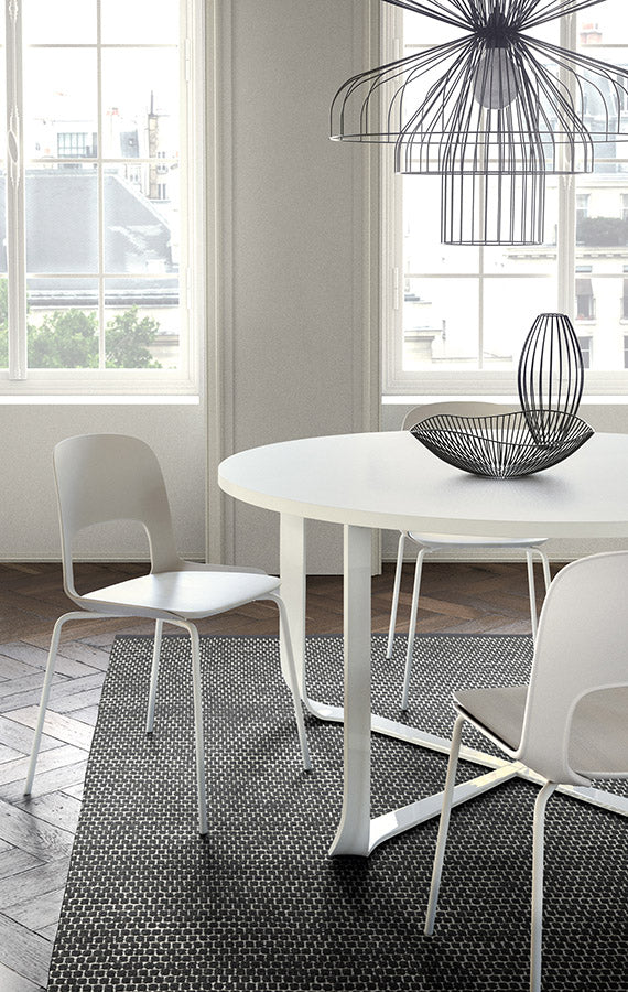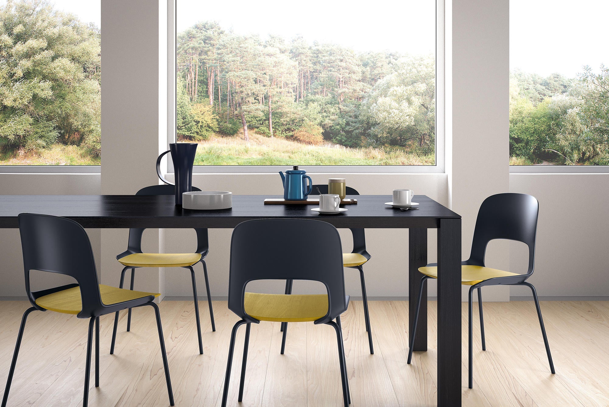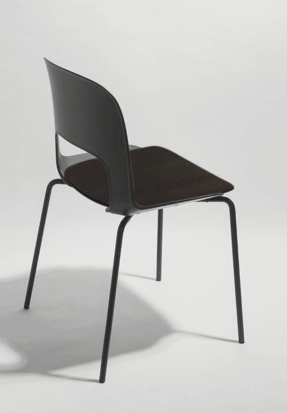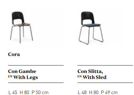 Scaunul Cora reprezintă rezultatul cercetării asupra esteticii diferitelor materiale precum lemnul, poliamida, metalul și angajamentul de a le face să coexiste într-un obiect simplu precum un scaun. Lemn pentru soliditatea sezutului, poliamida pentru un spatar elastic si invaluitor, metal pentru picioare care pastreaza o lejeritate vizuala. O treabă foarte complexă în strâns contact cu tehnicienii de turnare pentru a proiecta îmbinări și îmbrățișări între materiale care să fie plăcute respectând totuși reglementările de rezistență. rezultatul este un scaun puternic, usor si usor de manevrat, cu dimensiuni reduse, capabil sa valorifice la maximum materialele folosite.