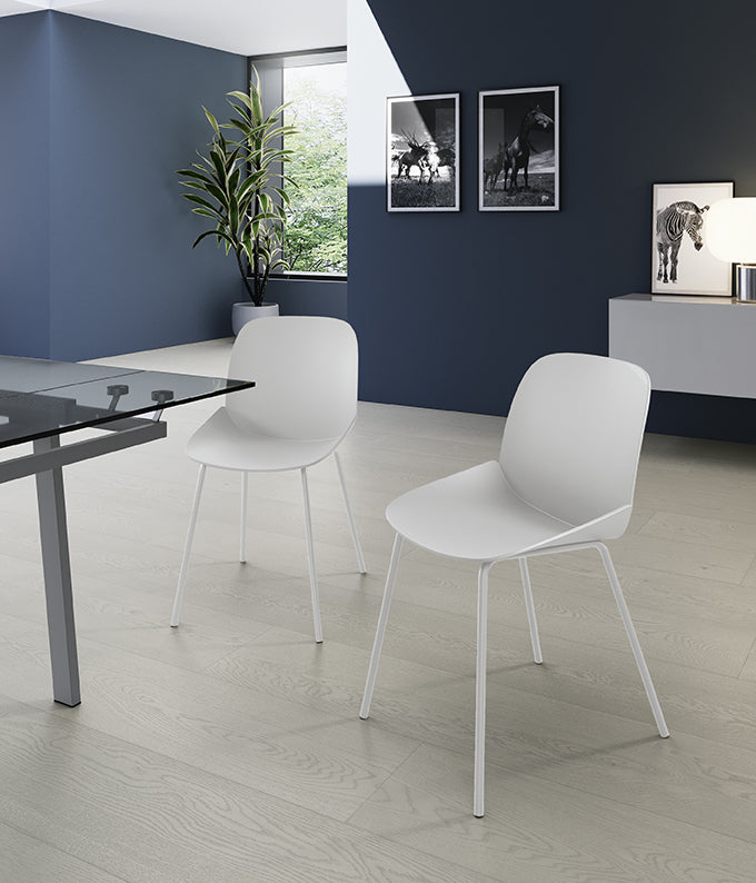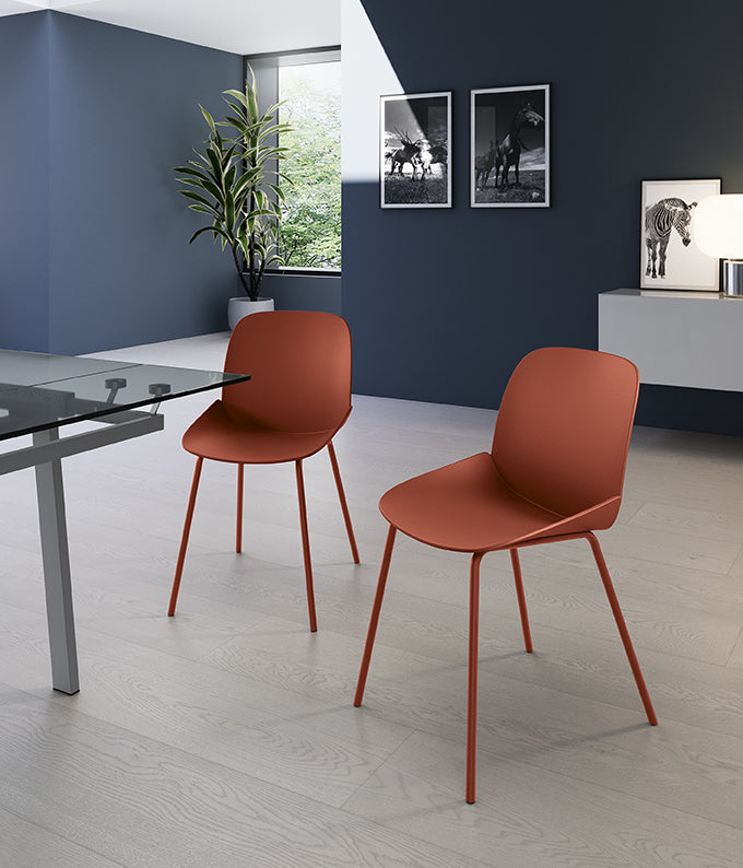 Elegant, dar casual, scaunul Eva combină rafinamentul stilistic cu caracterul practic de zi cu zi. Designul său minimalist se remarcă prin natura sa fluidă și simplitatea liniilor sale moderne, rotunjite. Fabricat din polipropilenă, este extrem de subțire și versatilă, dar foarte stabilă și robustă datorită bazei sale metalice. O pată de culoare pentru bucătăriile și sufrageriile moderne.