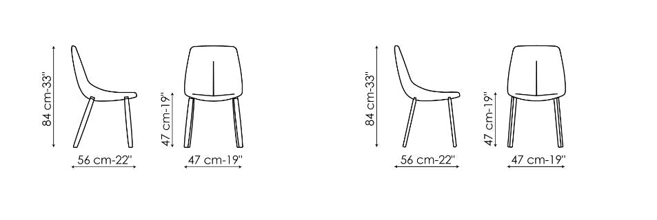 variante cromatice. Picioarele pot fi vopsite metal sau în finisaje elegante crom sau nichel negru. Design-ul se caracterizează prin linia din mijlocul spătarul: un semn care devine un detaliu vestimentar rafinat, evidențiind măiestria rafinată pentru un rezultat de mare versatilitate, potrivită pentru o utilizare variata.