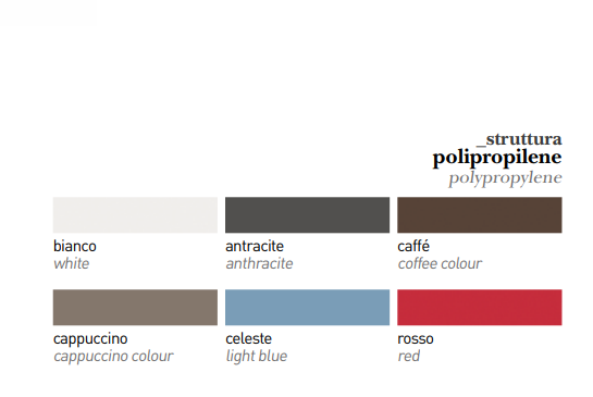 Un scaun, o mie de soluții Un număr practic infinit de variante, pentru un scaun potrivit deci pentru orice tip de mediu. Fiecare scaun se caracterizeaza printr-o mare versatilitate si un grad ridicat de personalizare datorita nenumaratelor combinatii care se pot realiza intre finisajele sezutului si structura.Structura din polipoprilen.
