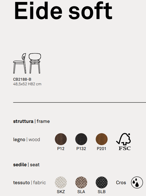 Păstrează structura din fag și spătarul tapitat al versiunii originale, îmbogățite cu tapițerie rafinată pe șezut și spătar.