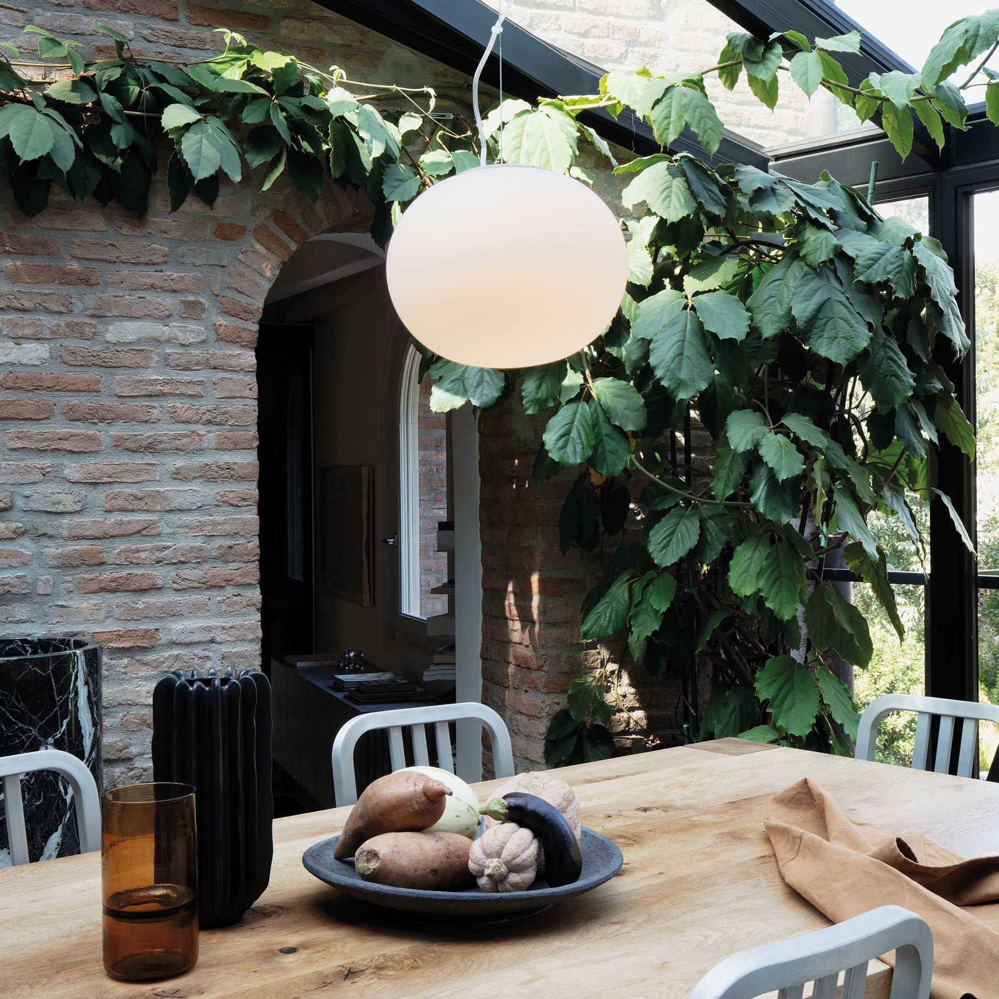 Cadru metalic si rozeta finisate cu vopsea pulbere alba cu inchidere magnetica fara suruburi. Cablu PVC transparent. Difuzor din sticlă suflată albă gravată.
