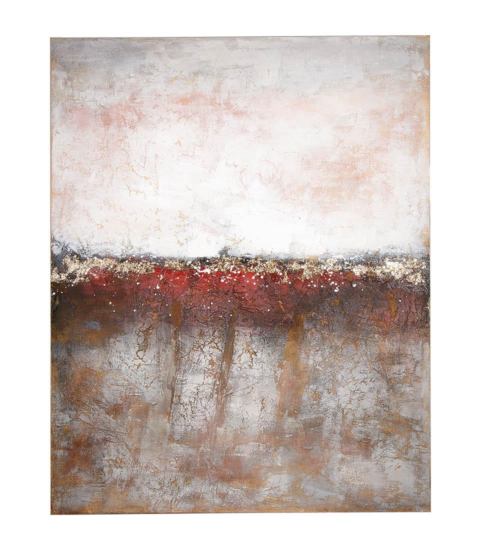 Tablou realizat cu tehnica picturii acrilice pe panza si cu aplicarea foitei de aur. Un model inspirat din arta abstractă cu detalii materiale și elemente aurii prețioase care creează atmosfere contemporane intense și sofisticate. Toate tablourile pictate cu tehnica acrilica pe panza sunt unice si realizate manual.