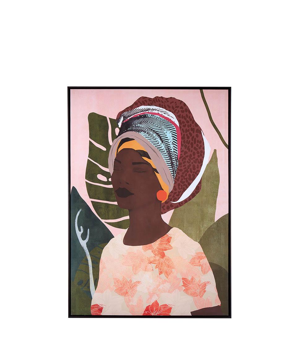 Tablou cu rama realizat cu tehnica serigrafiei pe panza. Culori luminoase cu tematica etnica, pentru iubitorii atmosferei exotice de Ethno Chic.