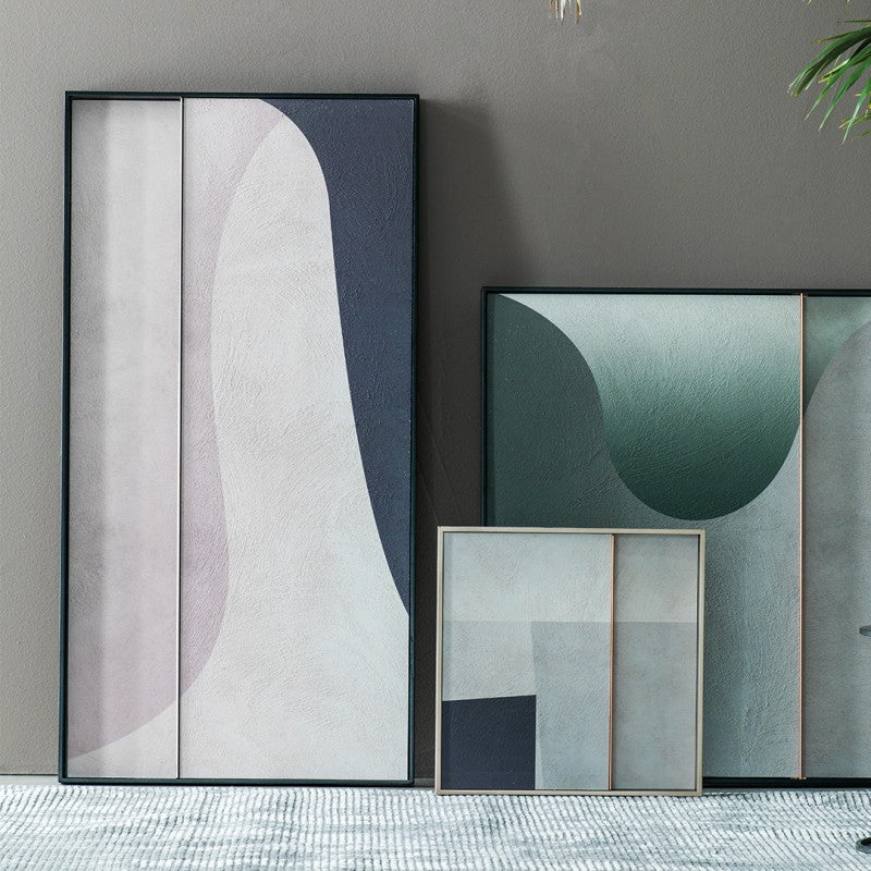 Tablou texturat cu finisaj de ciment si profil decorativ gros. 1 cm din oțel inoxidabil sau alamă. Cadru de 6 cm grosime cu finisaj lăcuit mat pentru profilul din oțel inoxidabil și negru auriu pentru profilul din alamă.