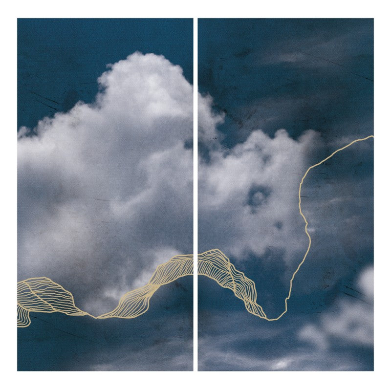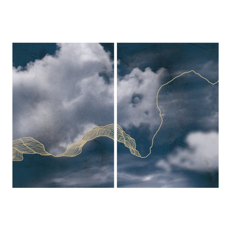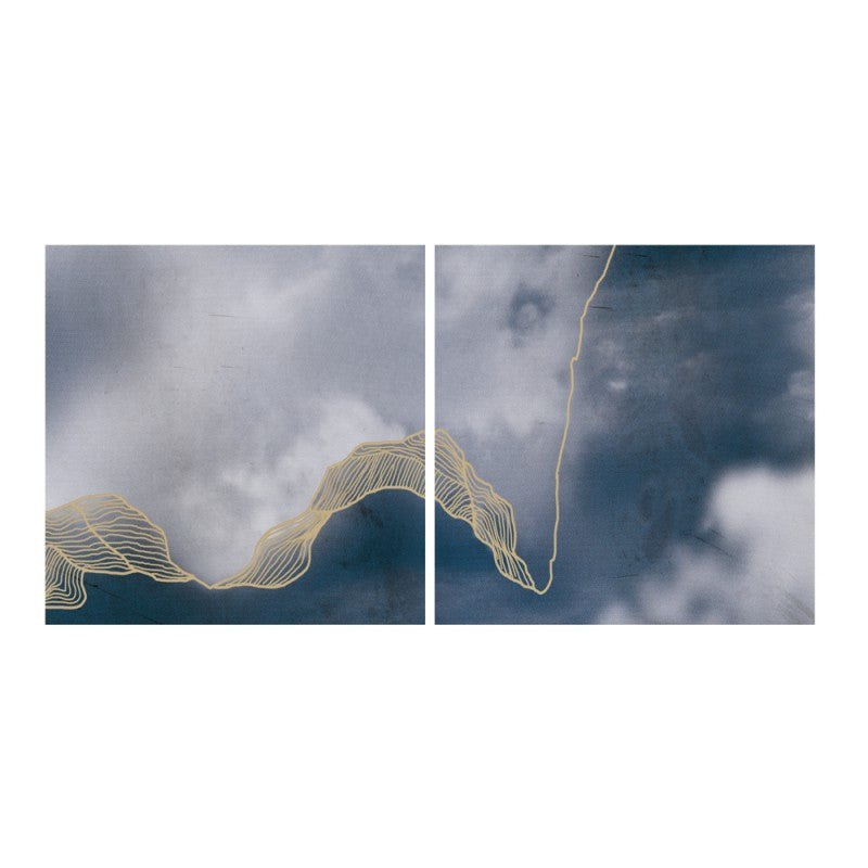 Set de 2 tablouri din material imprimat pe suprafata de ciment realizat manual. Rama este cu finisaj negru mat, negru auriu, auriu și cupru.