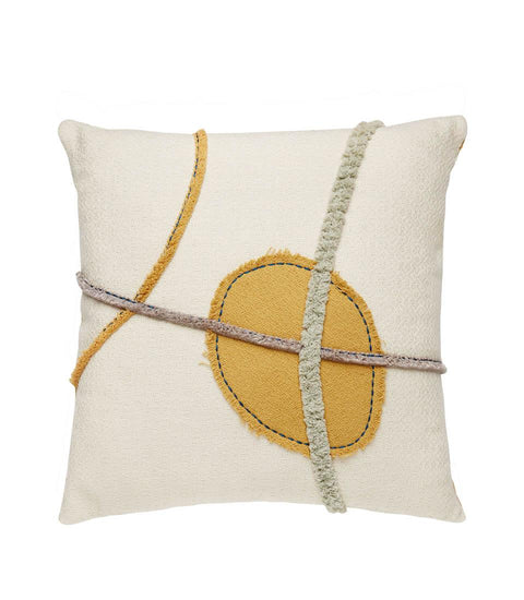 Perna din bumbac brodata cu aplicatii in relief. Colorata si pretioasa, este o perna ideala pentru a-ti decora livingul intr-un stil contemporan.