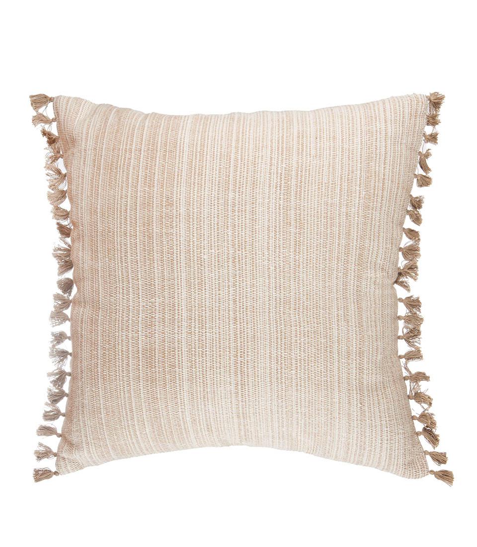 Perna din bumbac cu aplicatii si ciucuri. O piesa de mobilier in tonuri neutre pentru un living cu un design delicat si elegant. Perfect dacă este combinat cu versiunea dreptunghiulară a lumii contemporane. Dehusabil.