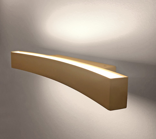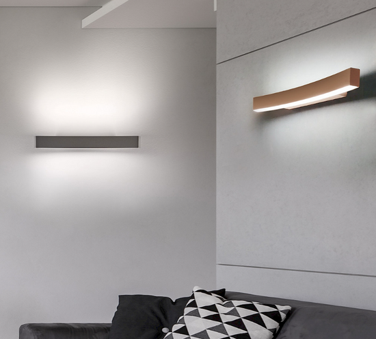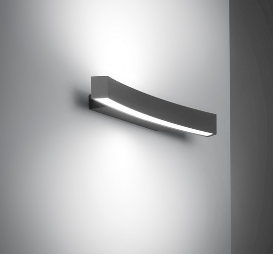 Aplica de perete curbata, compacta si usoara cu dubla emisie de lumina. Disponibil în doua dimensiuni, 45 sau 72 cm. PMMA sau difuzor prismatic pentru UGR<19. Balast electronic integrat în corpul lămpii.
