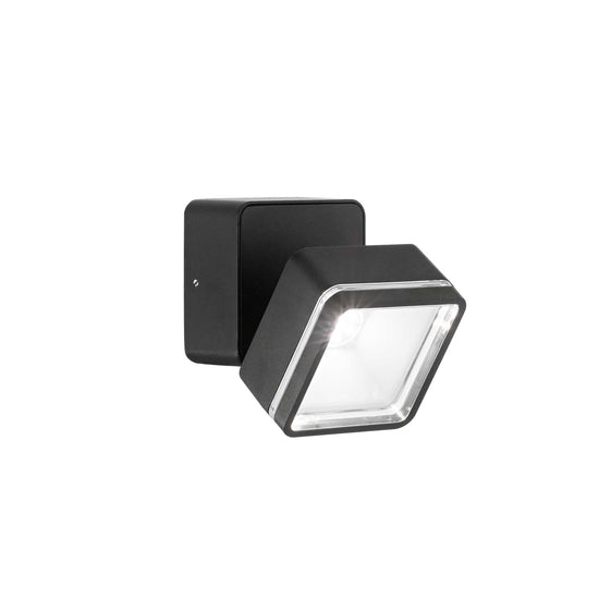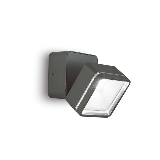 Corp de lumină din aluminiu vopsit cu pulbere. Difuzor rabatabil cu ecran de sticla. Disponibil în finisaje antracit, alb sau negru.