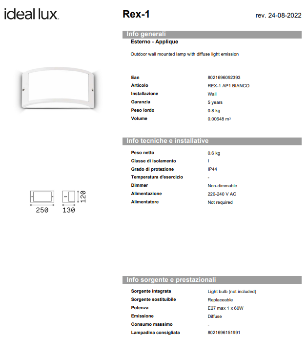 Corp de iluminat din aluminiu turnat sub presiune, acoperit cu pulbere de culoare antracit, alb sau cafeniu. Difuzor alb din material acrilic.