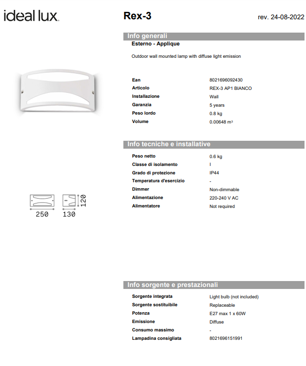 Corp de iluminat din aluminiu turnat sub presiune, acoperit cu pulbere antracit sau alb. Difuzor alb din material acrilic.