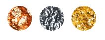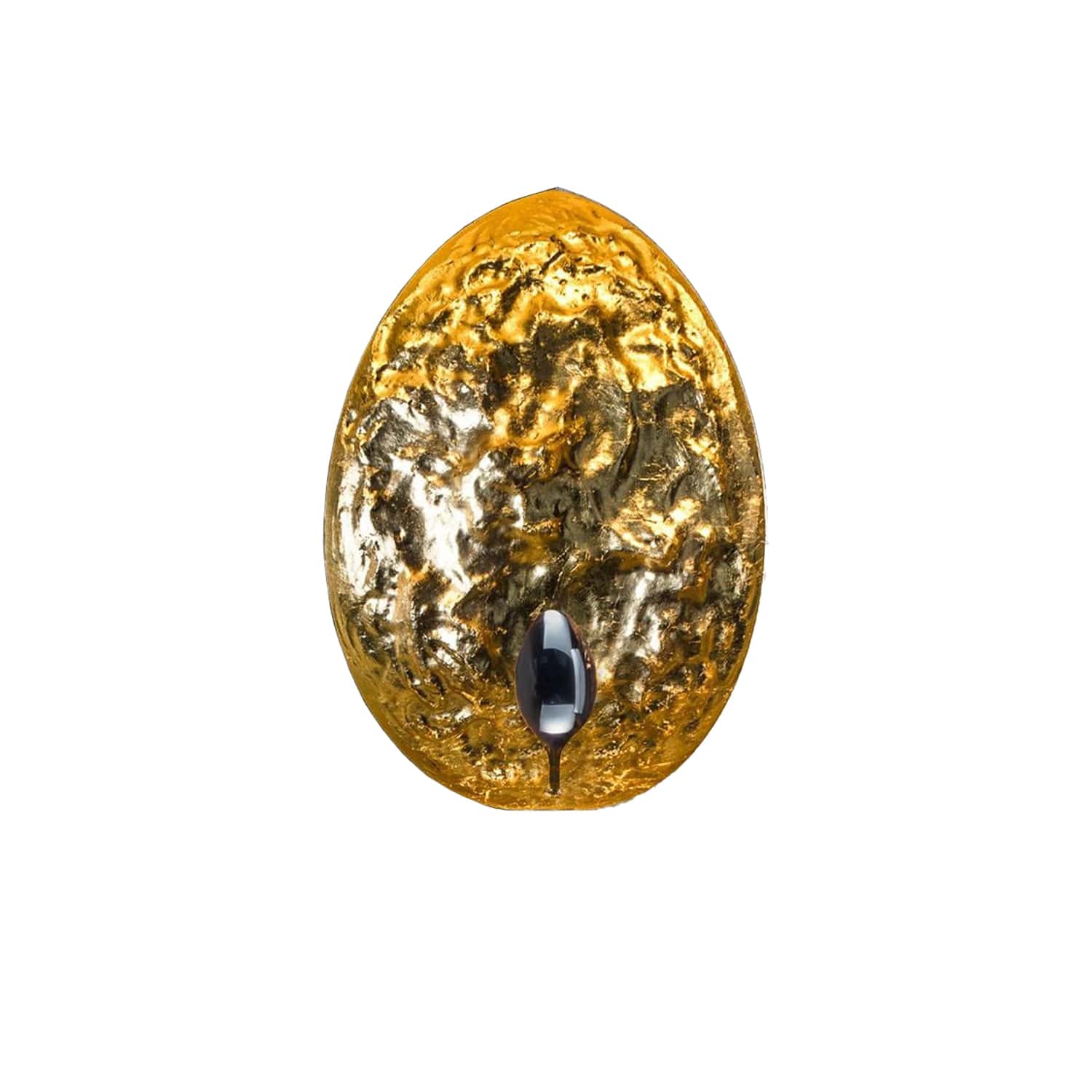 Sfert de sferă din aluminiu cu suprafață neregulată căptușită cu frunză de culoare auriu/argintiu/cupru, exterior alb, suport de lampă din oțel