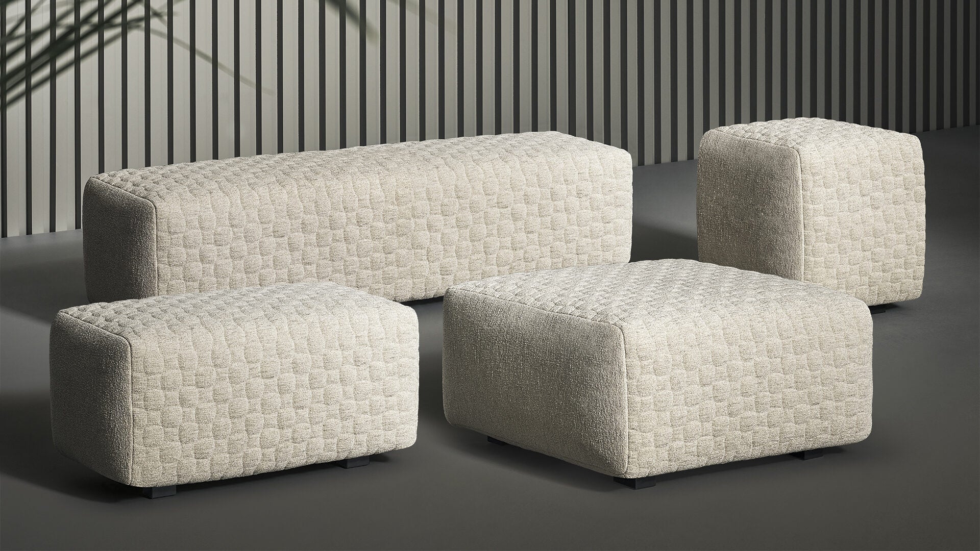 Colecția Intrecci include o bancă și puf în trei dimensiuni diferite, concepute pentru a se potrivi fiecărei nevoi și pentru a crea medii coordonate. Tapițeria este disponibilă în material textil sau piele.