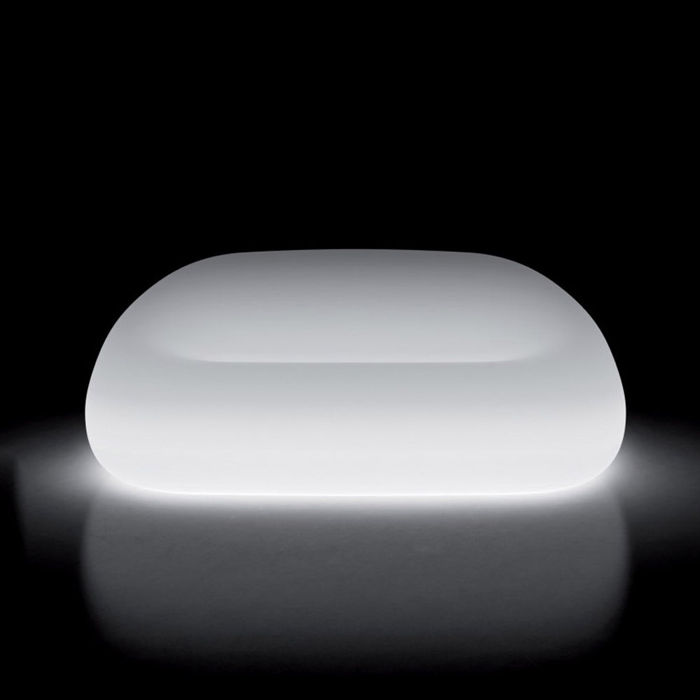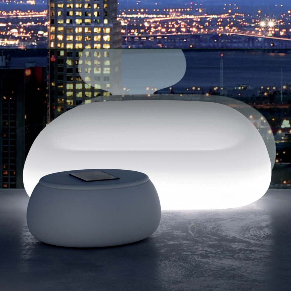 Bancuta din plastic cu iluminare led. O piesa de mobilier moderna.