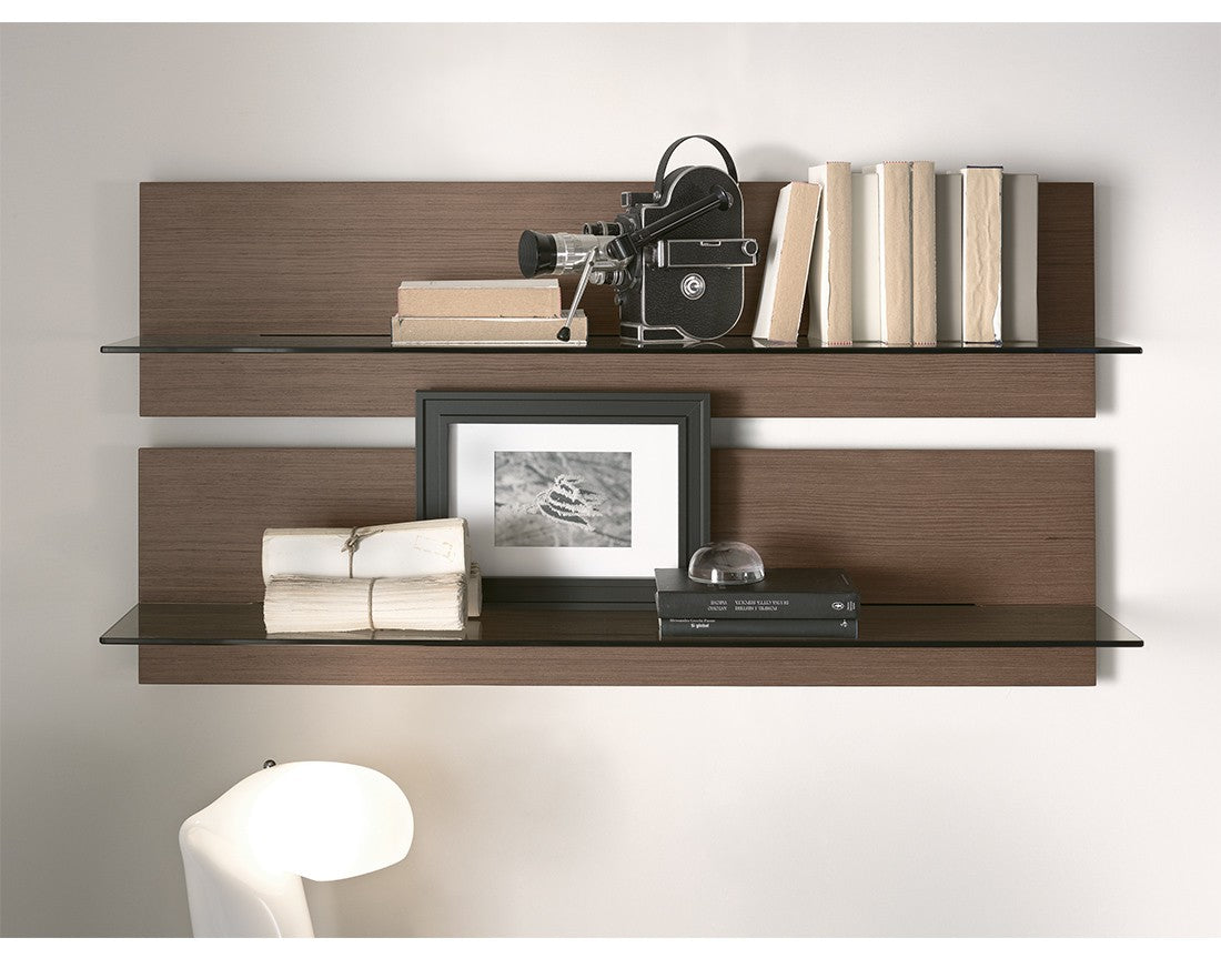 Raft furniruit din frasin sau nuc canaletto. Raft din sticla naturala securizata sau transparenta bronzata (8 mm grosime).