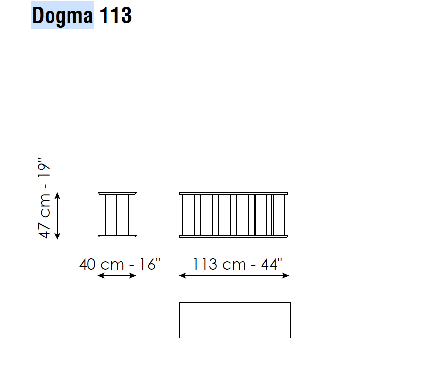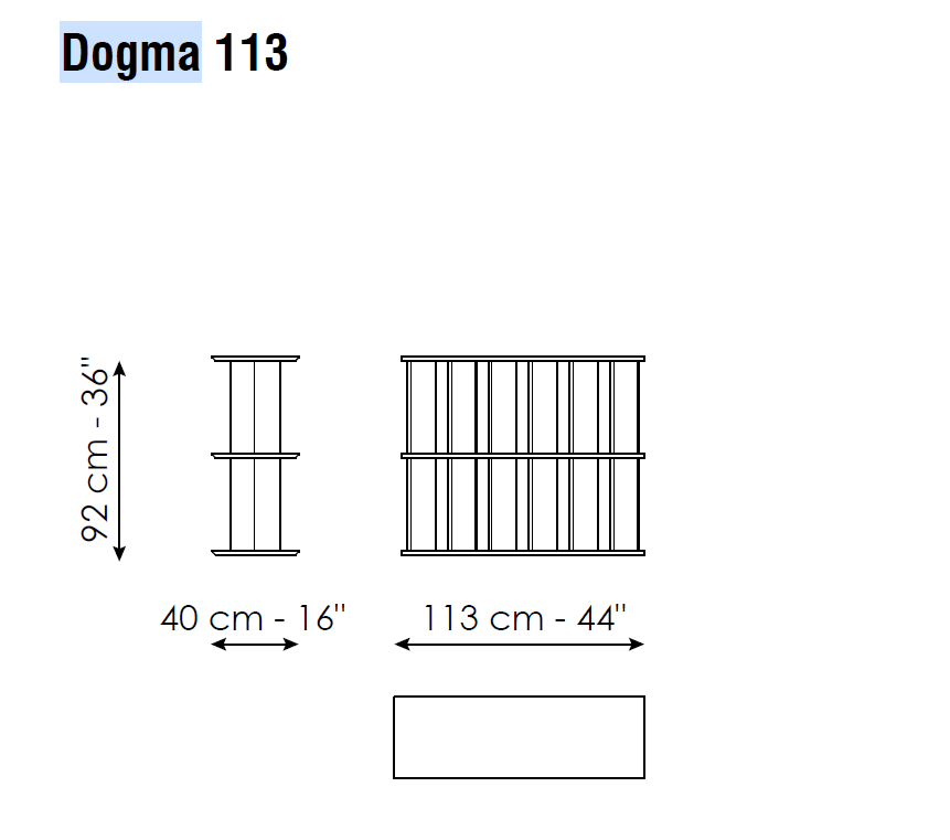 Aceasta piesa de mobilier este disponibila in 3 variante de marimi 113/180/240 cm pe lungime cu o profunzime de 40 cm si o inaltime de 47/92/137/182 cm. Corpurile de biblioteca se pot aseza unele langa celelalte sau pot fi de sine statatoare pe mijlocul centrul peretelui.